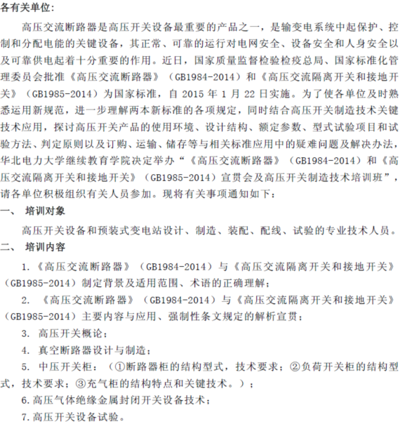 华北电力大学继续教育学院关于举办《高压交流